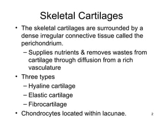 Study with Quizlet and memorize flashcards containing terms like List the three types of cartilage tissue Compare and contrast the functional properties of the three types of cartilage tissue. View Ch 6_ANSWER KEY_Skeletal 1doc from MATH 240 at Rutgers University Newark. The Human Bone Manual Bones and Cartilage provides the most in-depth review and synthesis assembled on the topic across all vertebrates.