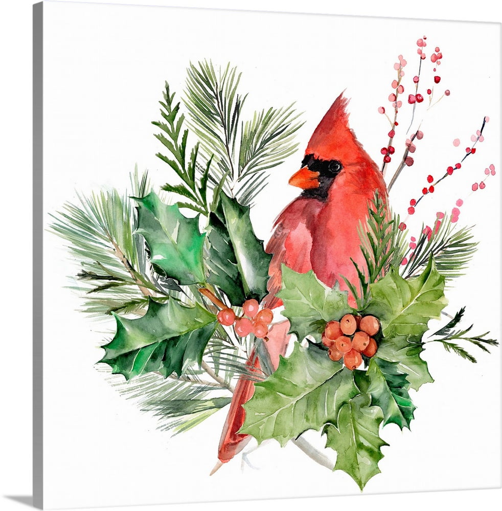 Cardinal Holly Christmas I Canvas Wall Art Home Decor 12x12 Walmart Com